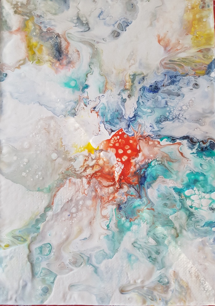 Allison’s first passion is in abstract art, including Dutch pouring techniques (though she likes to explore her skills further by taking on portrait commissions and bespoke requests). She finds inspiration from other artists’ work and from her love of nature and the great outdoors; being an avid gardener, Nordic walker and lover of animals and birds. She delights in the use of bright colours and allowing her imagination to take control. She uses various tools and techniques to create her paintings – ranging from brushes, and palette knifes to a squeegee, hairdryer & defuser, marbles, balloons, candlesticks, straws, blow torch, etc creating movement, texture and different effects.