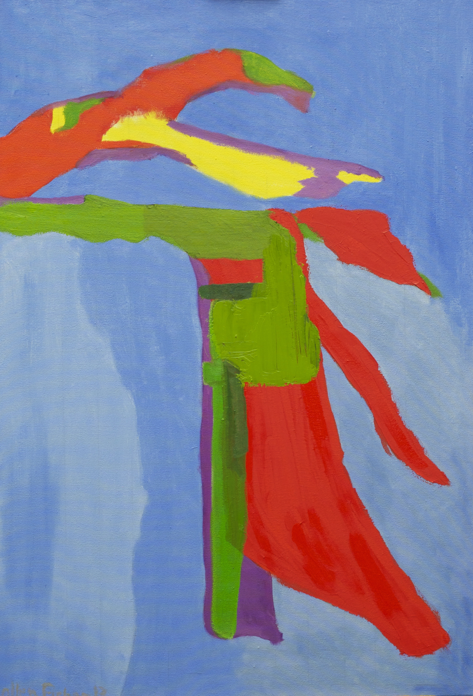 As an abstract painter, Stella Hidden’s paintings are entirely dependent on the language of colour, rhythm and form. Originally trained in technical drawing, Stella studied perspective and form and spent the early part of her career working in a drawing office before turning to painting. There has been a long personal transition between depicting representational elements of landscape and the human figure, to one of employing pure abstraction where movement of suspended colour is of prime importance.